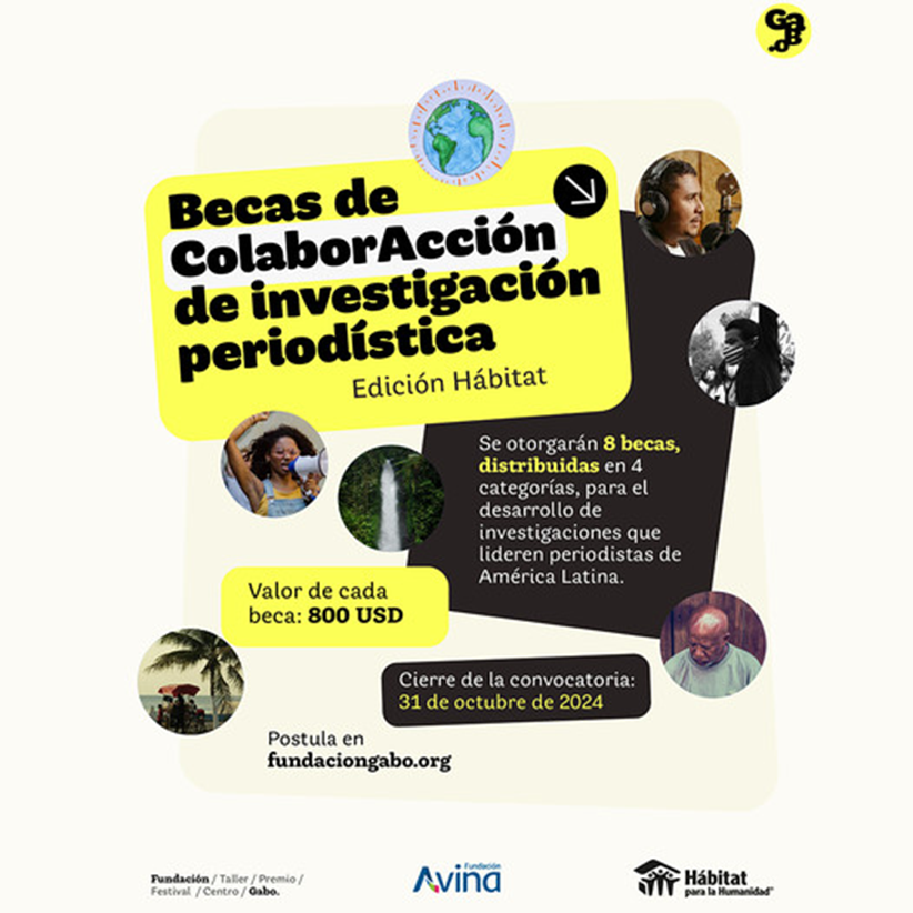 La Fundación Gabo, la Fundación Avina y Hábitat para la Humanidad invitan a participar de las Becas ColaborAcción Edición Hábitat, que entregarán un total de 8 becas de producción periodística, las cuales incluyen un estímulo económico y acceso a mentorías por parte de integrantes de la red de expertos y expertas de la Fundación Gabo.