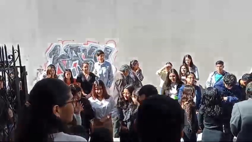 Los jóvenes dejaron el auditorio del Colegio y de manera ordenada rápidamente se ubicaron en lugares seguros y esperaron que la emergencia pase.