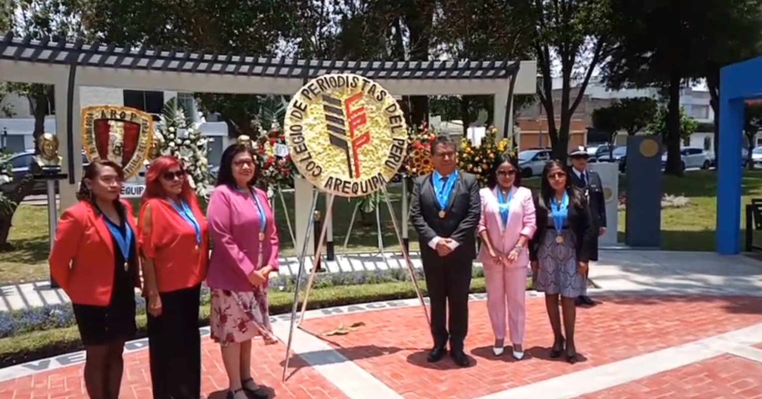 La ceremonia conmemorativa se realizó a las 11:16 horas de la mañana en el parque el Periodista, del distrito José Luis Bustamante y Rivero de esta ciudad, que concentró a los agremiados del Colegio de Periodistas Consejo Regional Arequipa a cargo del Mag. Héctor Mayhuire; la Asociación de Periodistas Deportivos dirigida por CPP Juan Carlos Begazo; el Centro Federado de Periodistas de Arequipa encabezada por Daniel Vento.