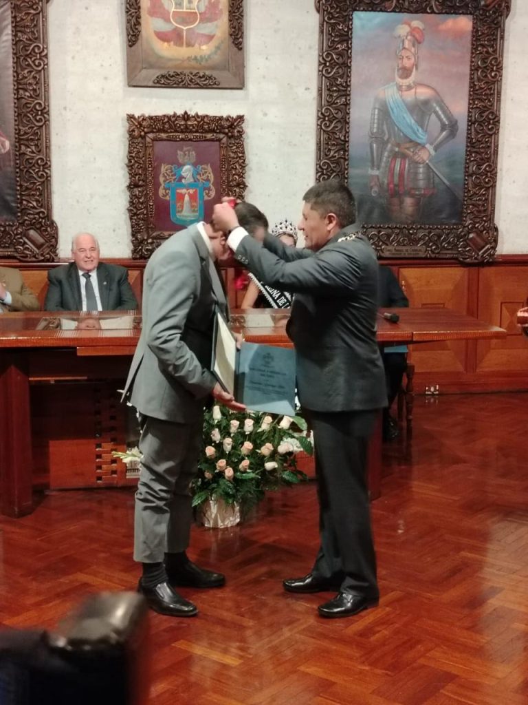 Destacando su ejemplar trayectoria profesional en el campo del periodismo, Bernardino Rodríguez Carpio fue condecorado con la Medalla de Oro por parte de la Municipalidad Provincial de Arequipa.