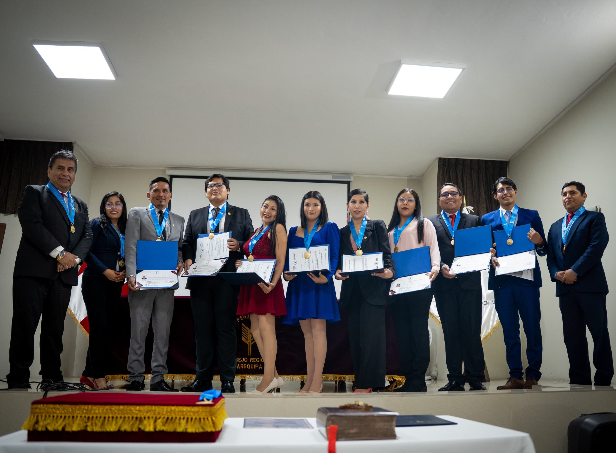 El evento estuvo presidido por el decano Héctor Mayhuire, acompañado por los directivos Nelly Hancco y Ronel Huayta, quienes llevaron a cabo los actos protocolares de juramentación. Durante la ceremonia, se entregaron medallas, solaperos, resoluciones de reconocimiento, diplomas y carnets que acreditan a los nuevos integrantes como miembros oficiales del Colegio de Periodistas de Arequipa. Esto les permitirá ejercer sus funciones en instituciones públicas o privadas.
