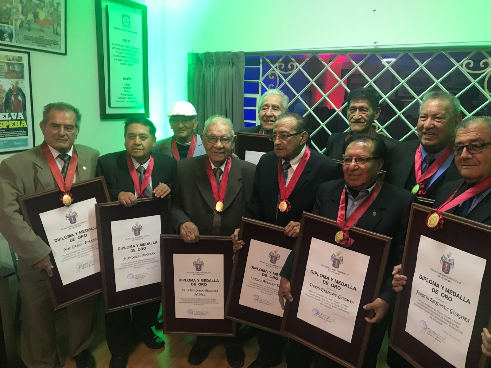 Noé Carpio junto a leyendas del periodismo arequipeño, Juan Salas Ocharán (+), Alfredo Barbachán (+), Luis Eduardo Podestá, Estenio Zúñiga (+), Carlos Zúñiga Alemán, Darío Pariente (+), “Gato” Álvarez, Henry Guillén Sosa (+) y Jorge Esquivel Góngora en reunión cuando recibieron Medalla de la Ciudad