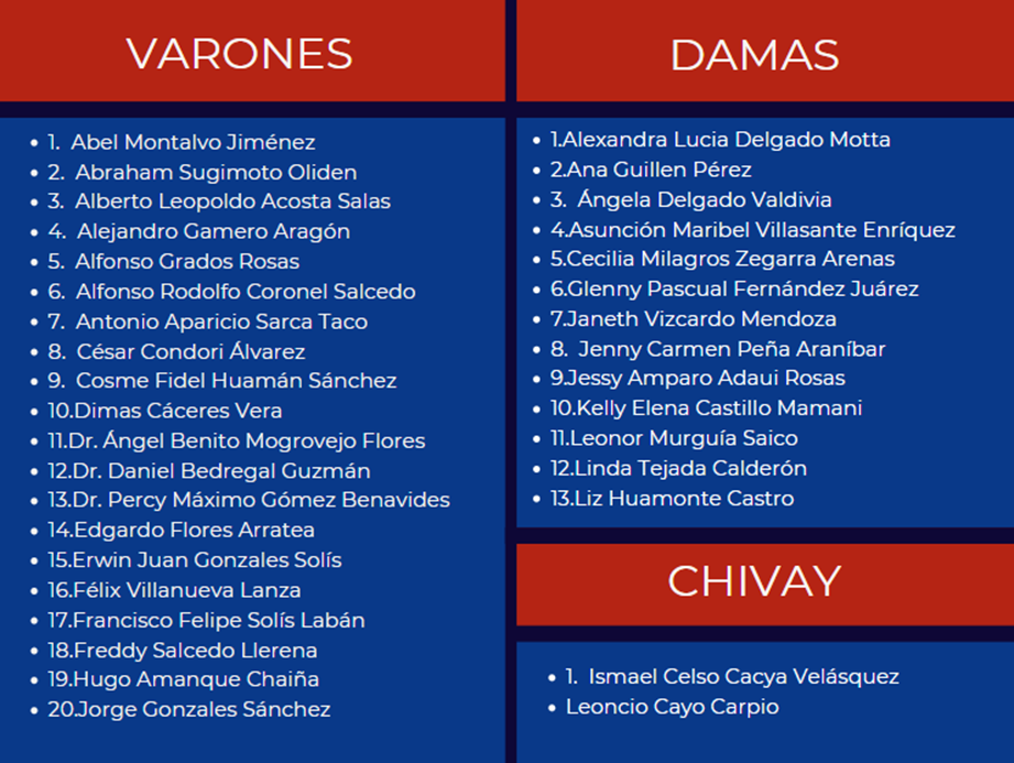 En el reconocimiento de 80 comunicadores estuvieron considerados también varios colegiados, entre ellos Abel Montalvo, Alfonso Coronel, Percy Gómez, Víctor Hugo Mendoza, Francisco Solís, Hugo Amanque, Jorge Gonzales, José Figueroa Cuentas, Sergio Medina, Willy Galdos, Rocío Mendez, Nexmi Daza, Naceroa Zegarra, Rossmery Puente y otros.