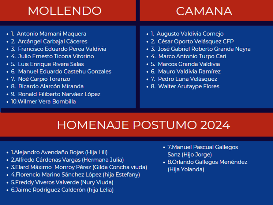 De igual manera, entre los homenajeados están los directivos del CPP-CRA: Ana Guillén Pérez, Yvonne Leyva y Jonathan Bárcena.